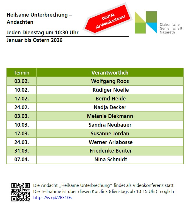 Auch ohne die Not einer Pandemie feiern wir die Heilsame Unterbrechung wöchentlich weiterhin digital: https://is.gd/2lG1Gs
